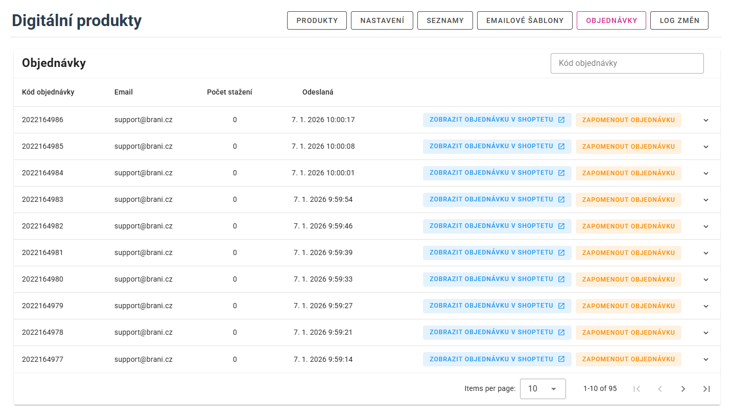 Doplněk bude pro tento konkrétní produkt po zakoupení poukazu posílat kód z nahraných hodnot z přiřazeného seznamu. Jakmile si zákazník na e-shopu poukaz objedná, uvidíte objednávku na záložce Objednávky, včetně hodnoty, jakou doplněk zákazníkovi odeslal (psali jsme výše).